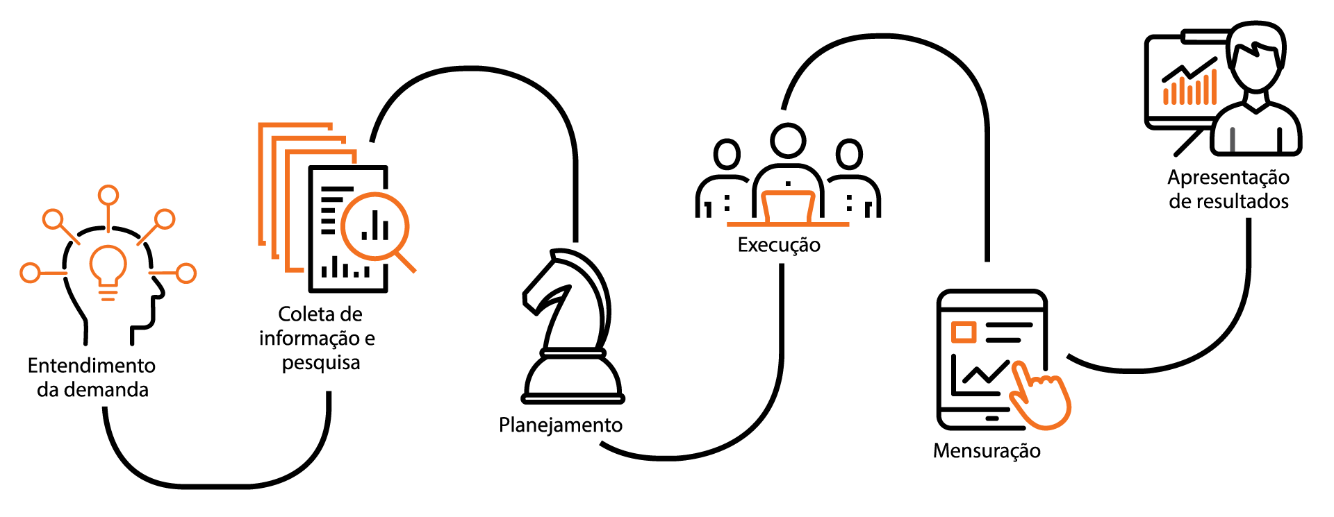 Somos uma equipe de profissionais que avalia o cenário e os desafios dos clientes. Desenvolvemos o planejamento estratégico e tático de Comunicação e entregamos as soluções mais adequadas para cada demanda. Operacionalizamos recursos e ações para viabilizar os resultados desejados.